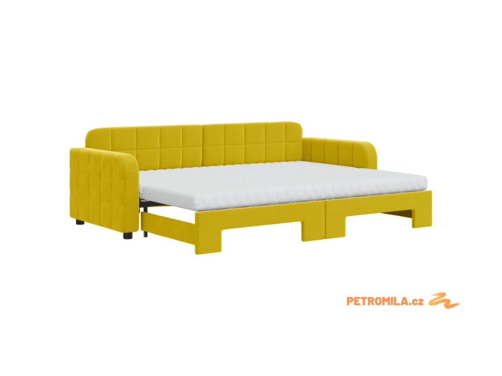Válenda s přistýlkou a matracemi žlutá 80 x 200 cm samet