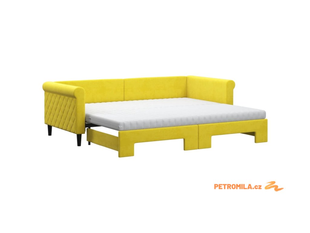 Válenda s přistýlkou a matracemi žlutá 90 x 200 cm samet