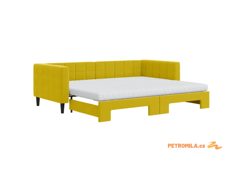 Válenda s přistýlkou a matracemi žlutá 90 x 200 cm samet