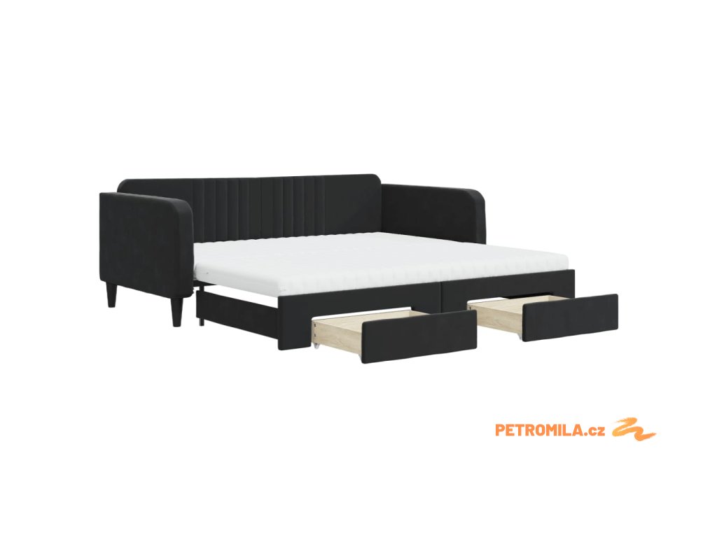 Válenda s přistýlkou a zásuvkami černá 100 x 200 cm samet