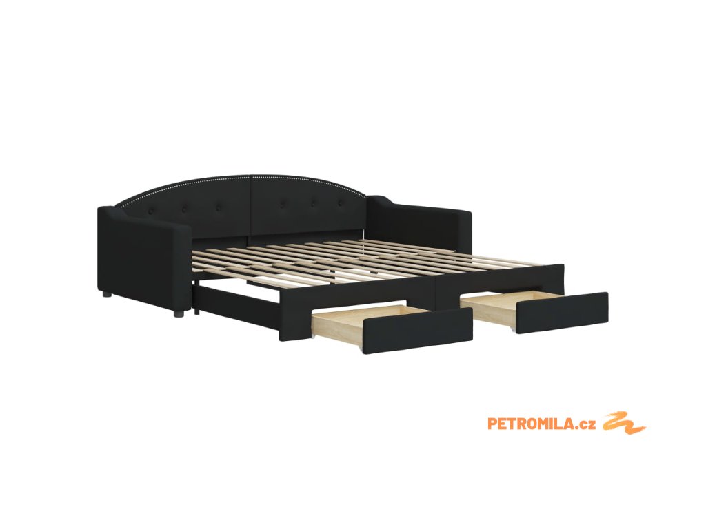 Válenda s přistýlkou a zásuvkami černá 100 x 200 cm textil