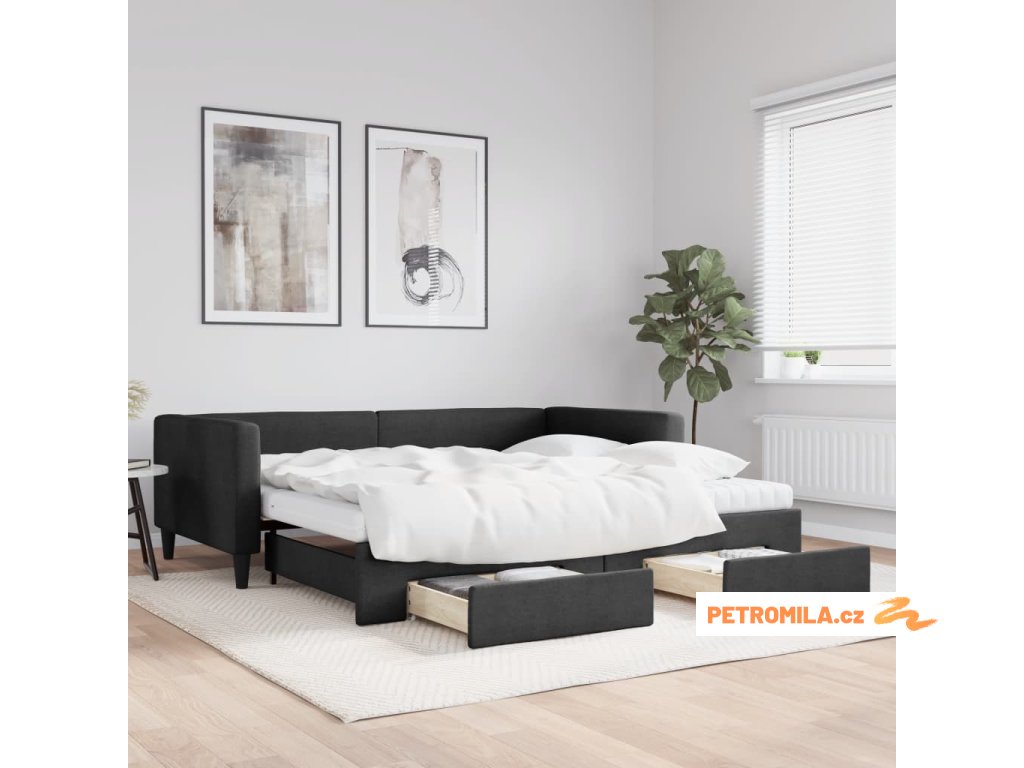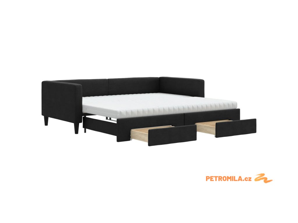 Válenda s přistýlkou a zásuvkami černá 100 x 200 cm textil