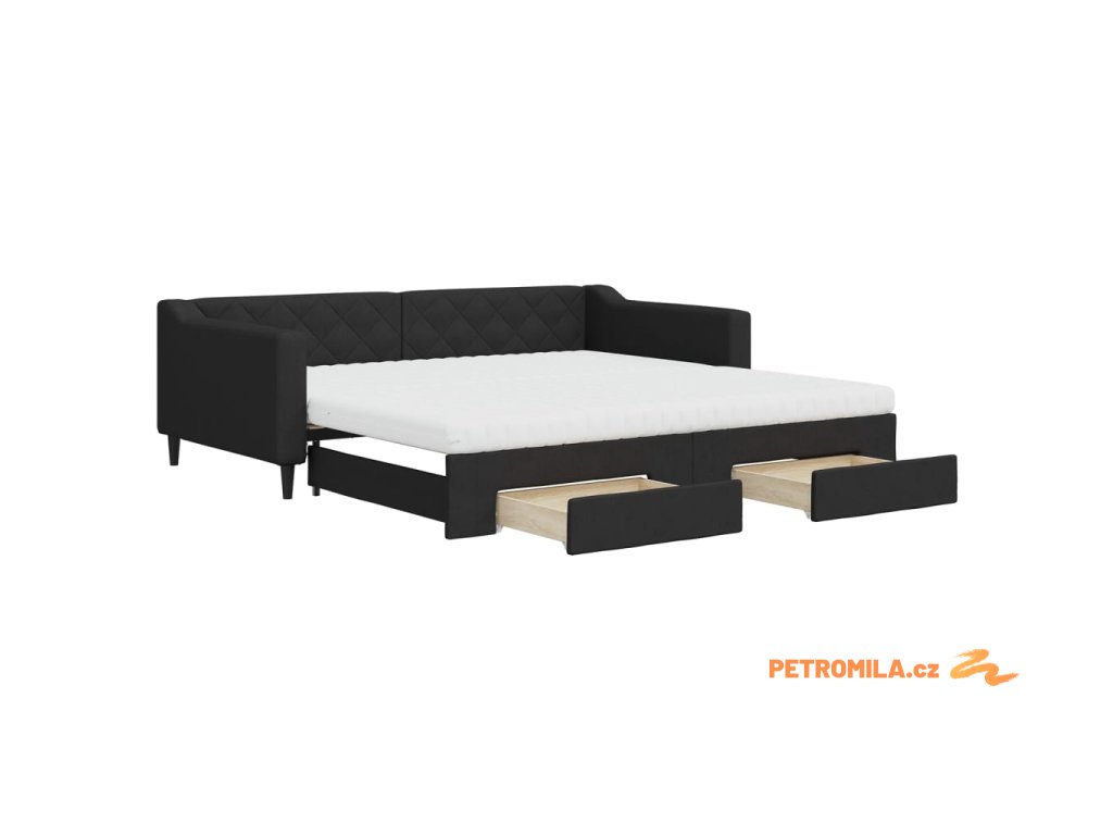 Válenda s přistýlkou a zásuvkami černá 100 x 200 cm textil