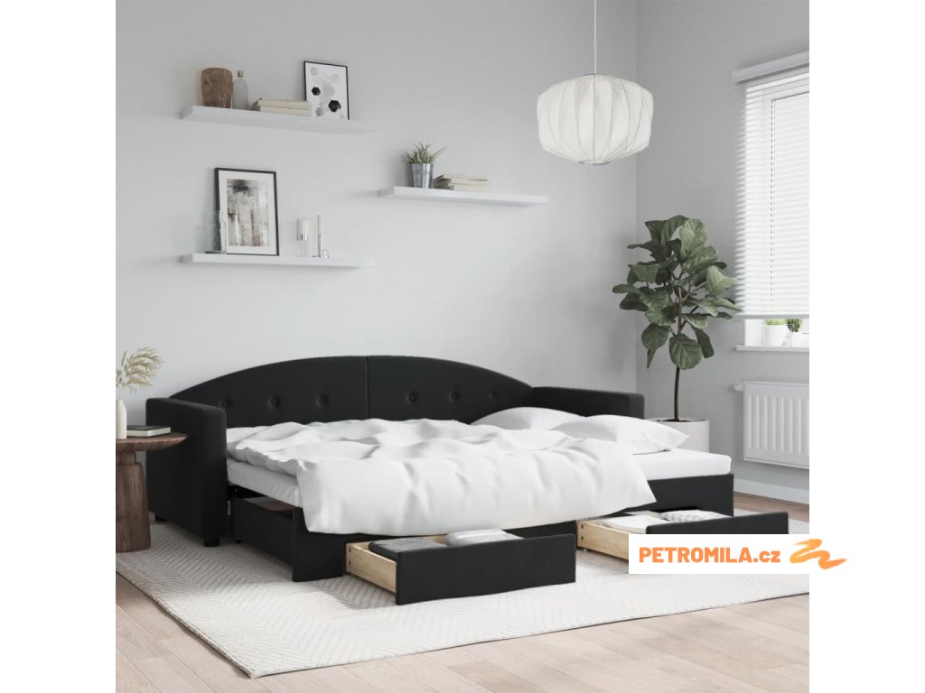 Válenda s přistýlkou a zásuvkami černá 80 x 200 cm samet