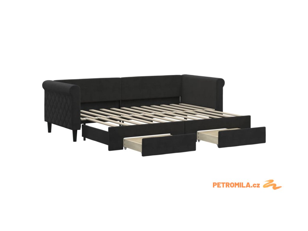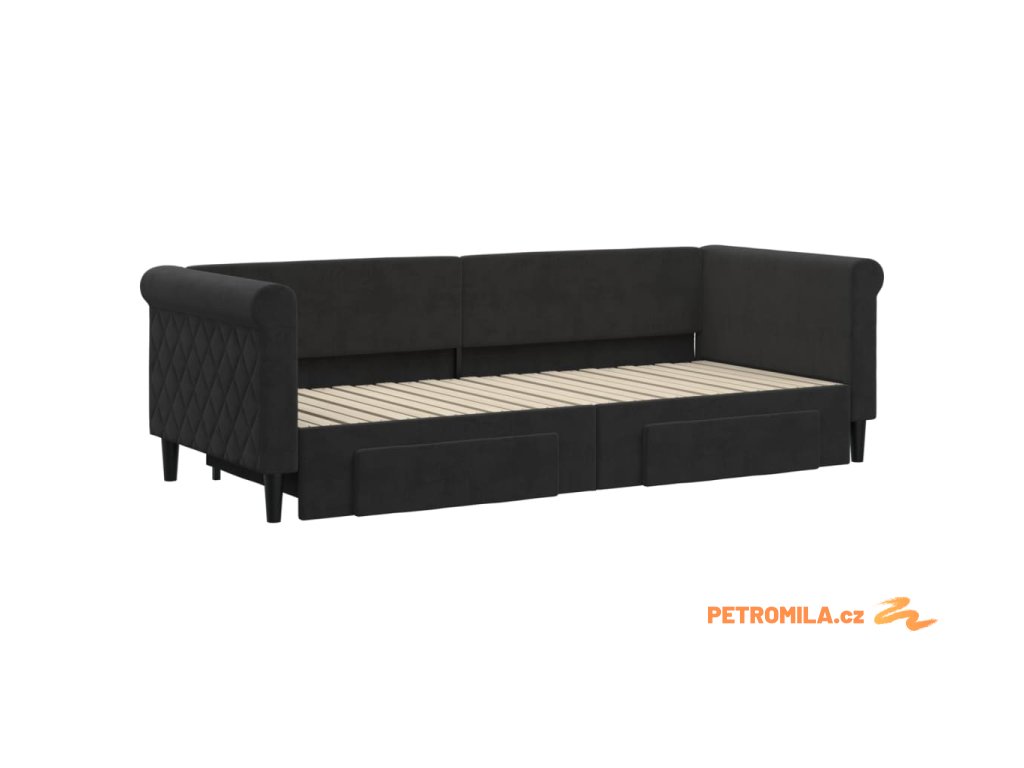 Válenda s přistýlkou a zásuvkami černá 80 x 200 cm samet