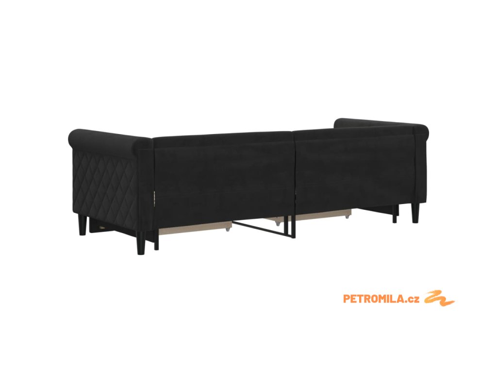 - Měkký samet a pevná konstrukce: Tato válenda má robustní rám zhotovený ze dřeva a kovu a je čalouněná měkkým a pohodlným sametem.