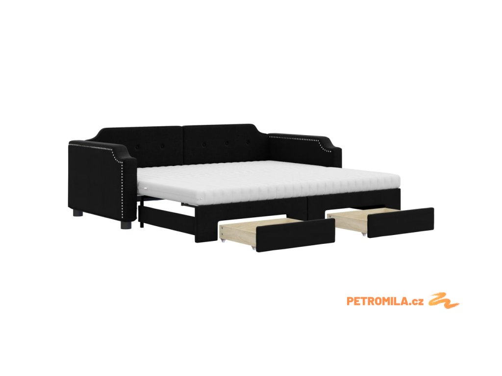 Válenda s přistýlkou a zásuvkami černá 80 x 200 cm textil
