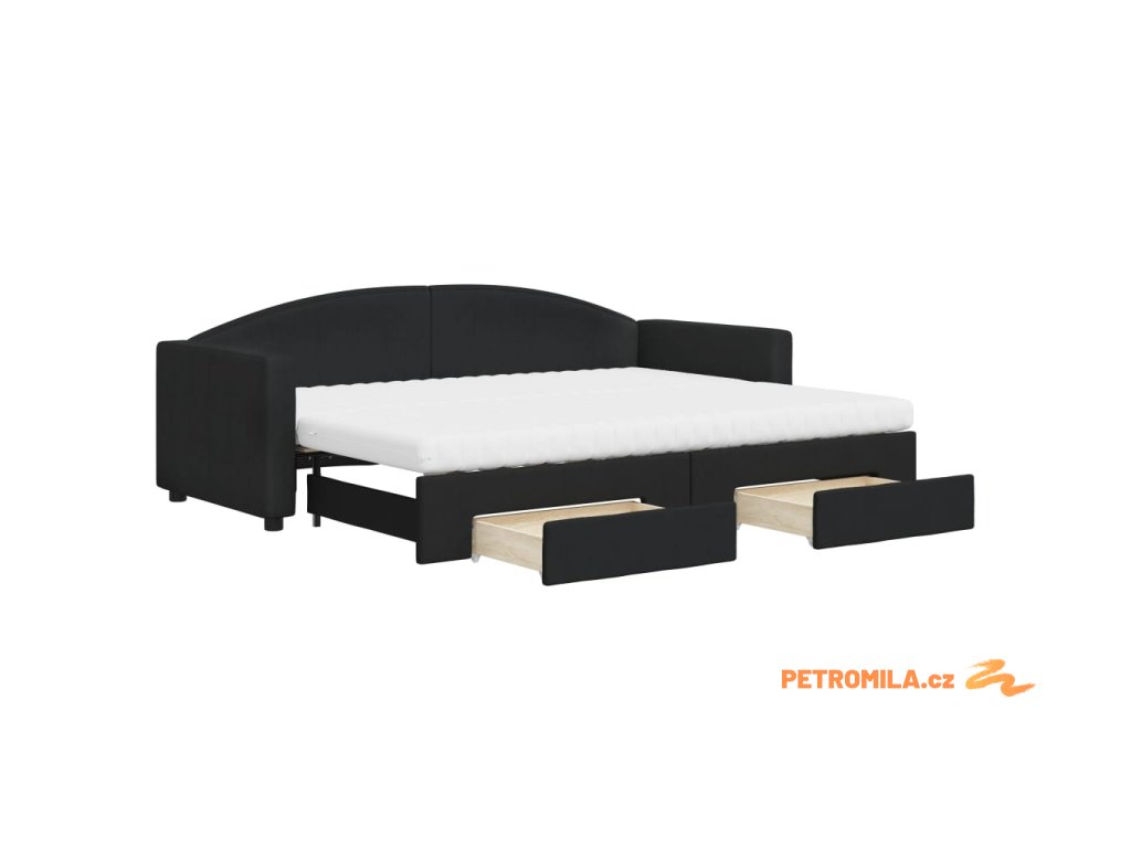 Válenda s přistýlkou a zásuvkami černá 80 x 200 cm textil