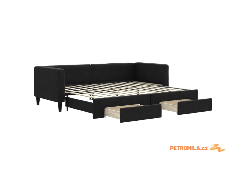 Válenda s přistýlkou a zásuvkami černá 80 x 200 cm textil