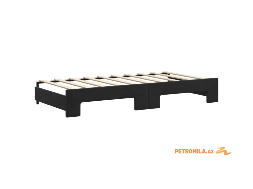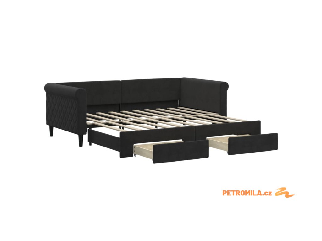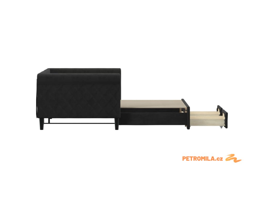 Válenda s přistýlkou a zásuvkami černá 90 x 190 cm samet