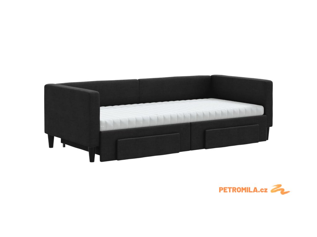Válenda s přistýlkou a zásuvkami černá 90 x 190 cm textil