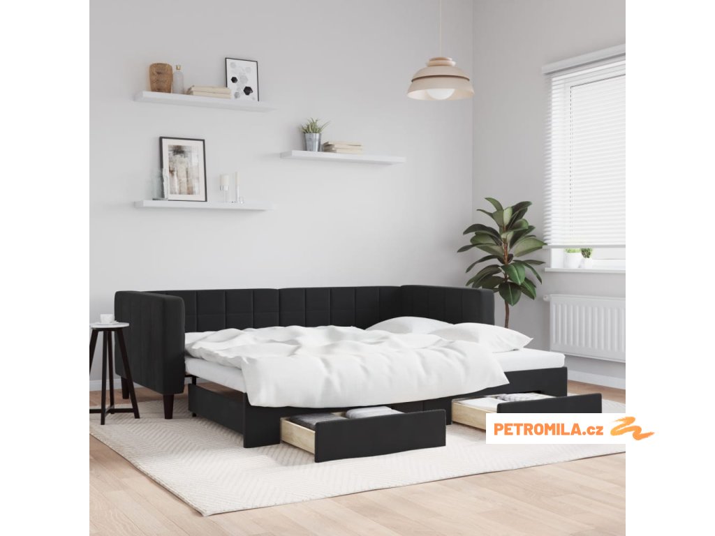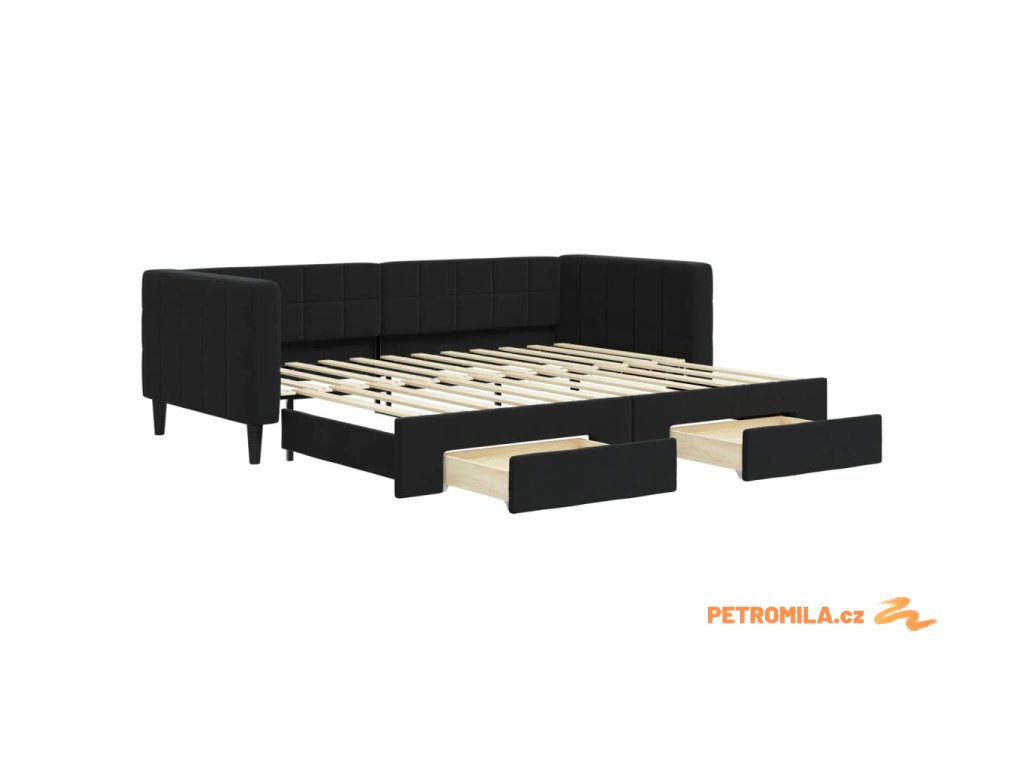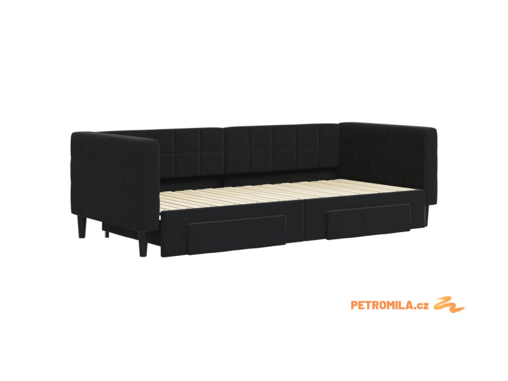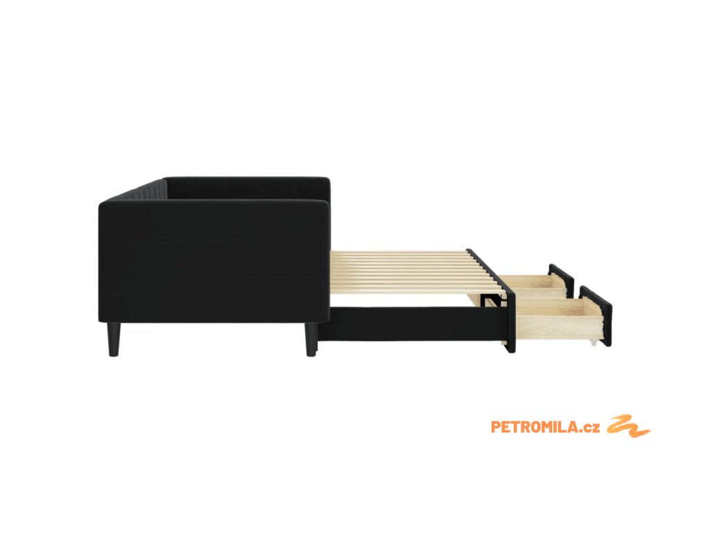 Válenda s přistýlkou a zásuvkami černá 90 x 200 cm samet