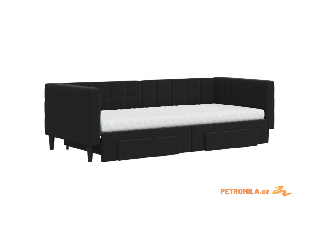 Válenda s přistýlkou a zásuvkami černá 90 x 200 cm samet