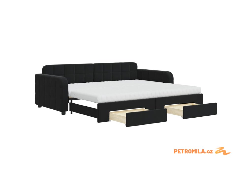 Válenda s přistýlkou a zásuvkami černá 90 x 200 cm samet