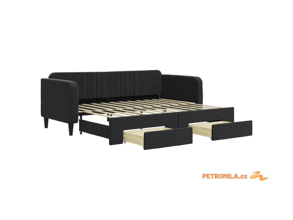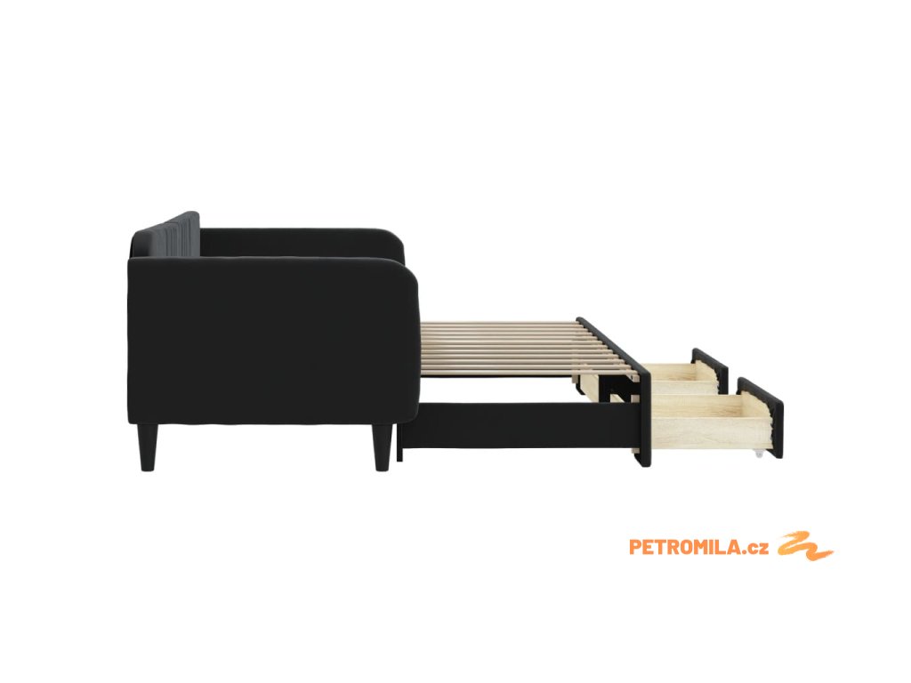 Válenda s přistýlkou a zásuvkami černá 90 x 200 cm samet