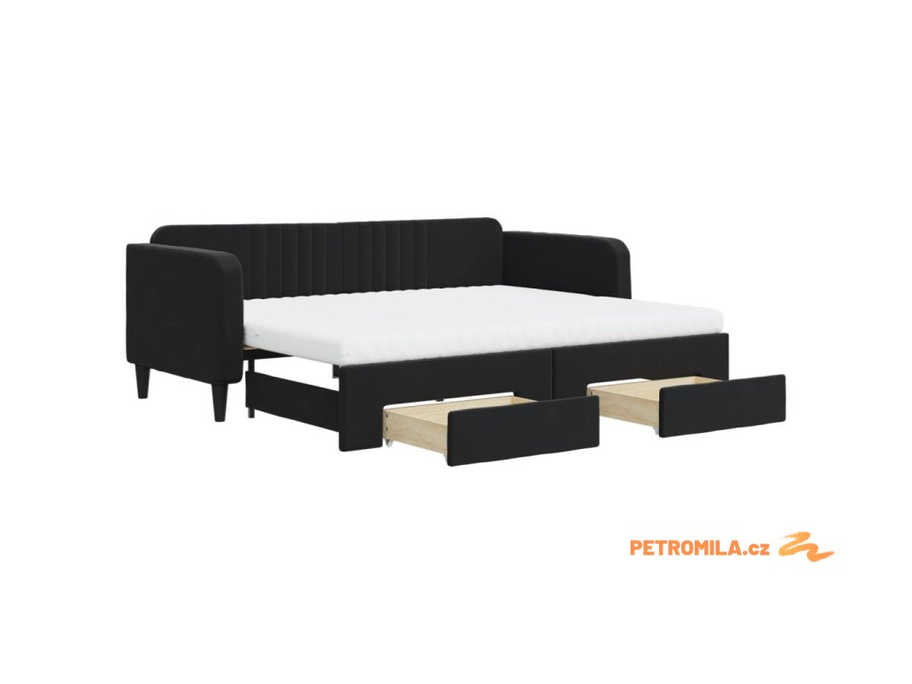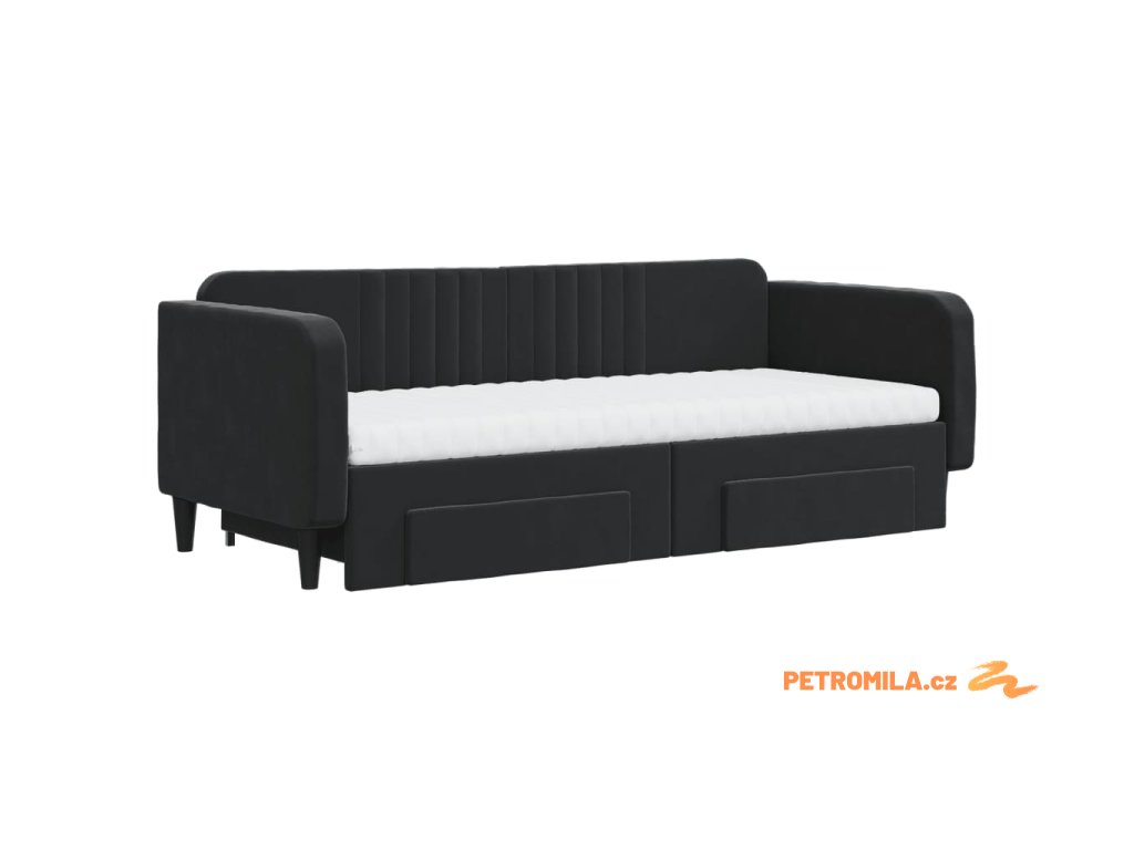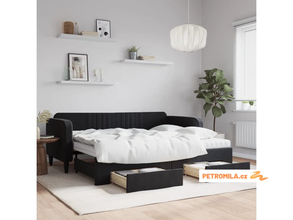 Válenda s přistýlkou a zásuvkami černá 90 x 200 cm samet