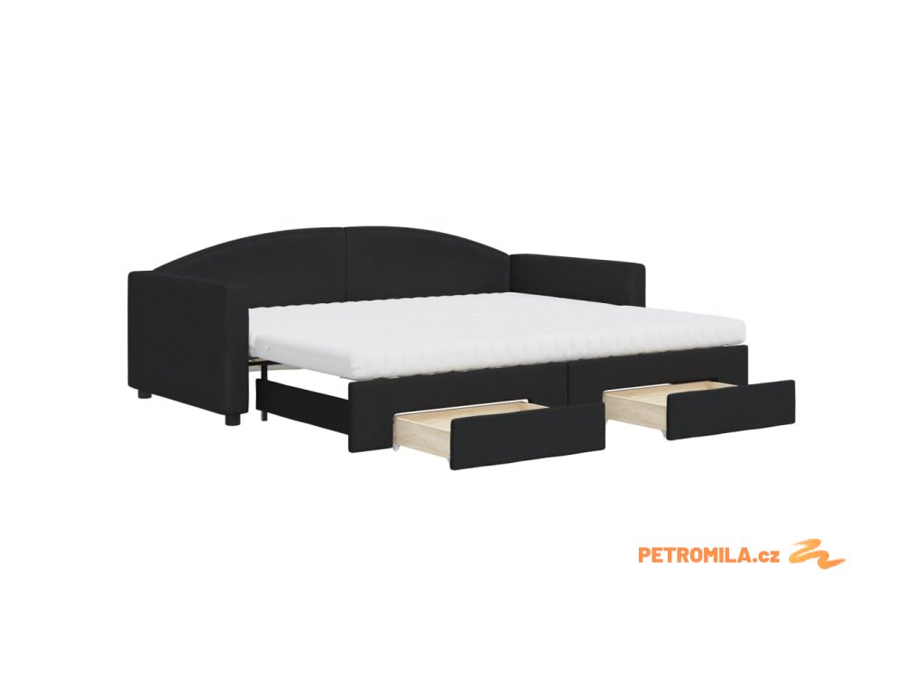 Válenda s přistýlkou a zásuvkami černá 90 x 200 cm textil