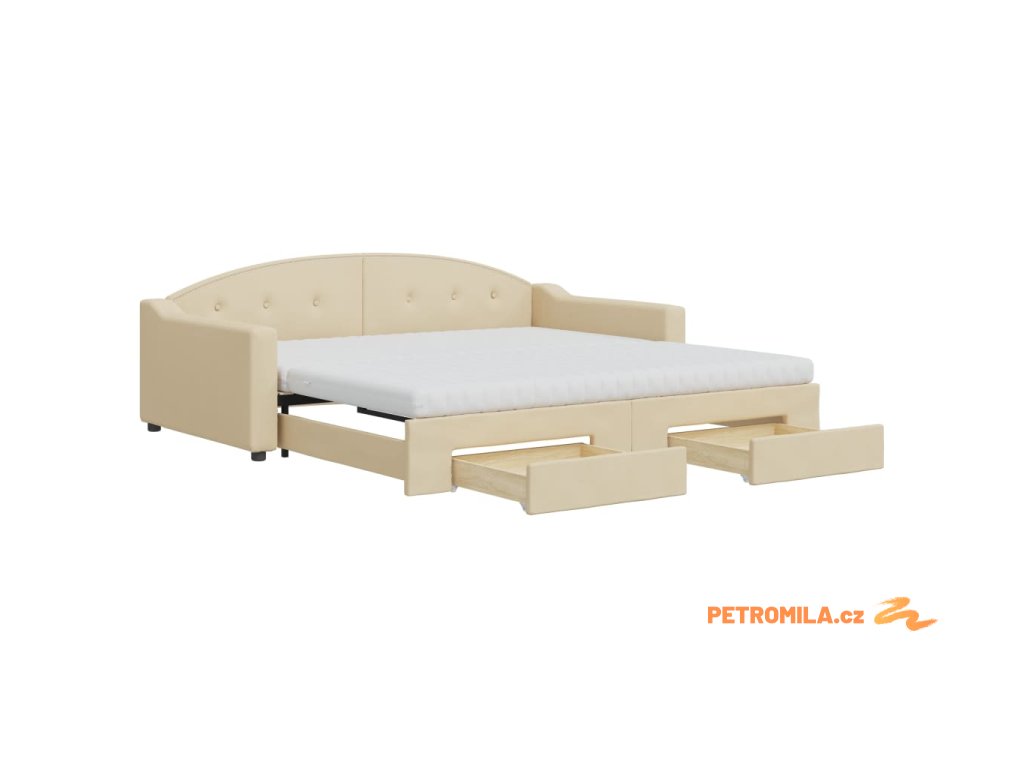 Válenda s přistýlkou a zásuvkami krémová 100 x 200 cm textil
