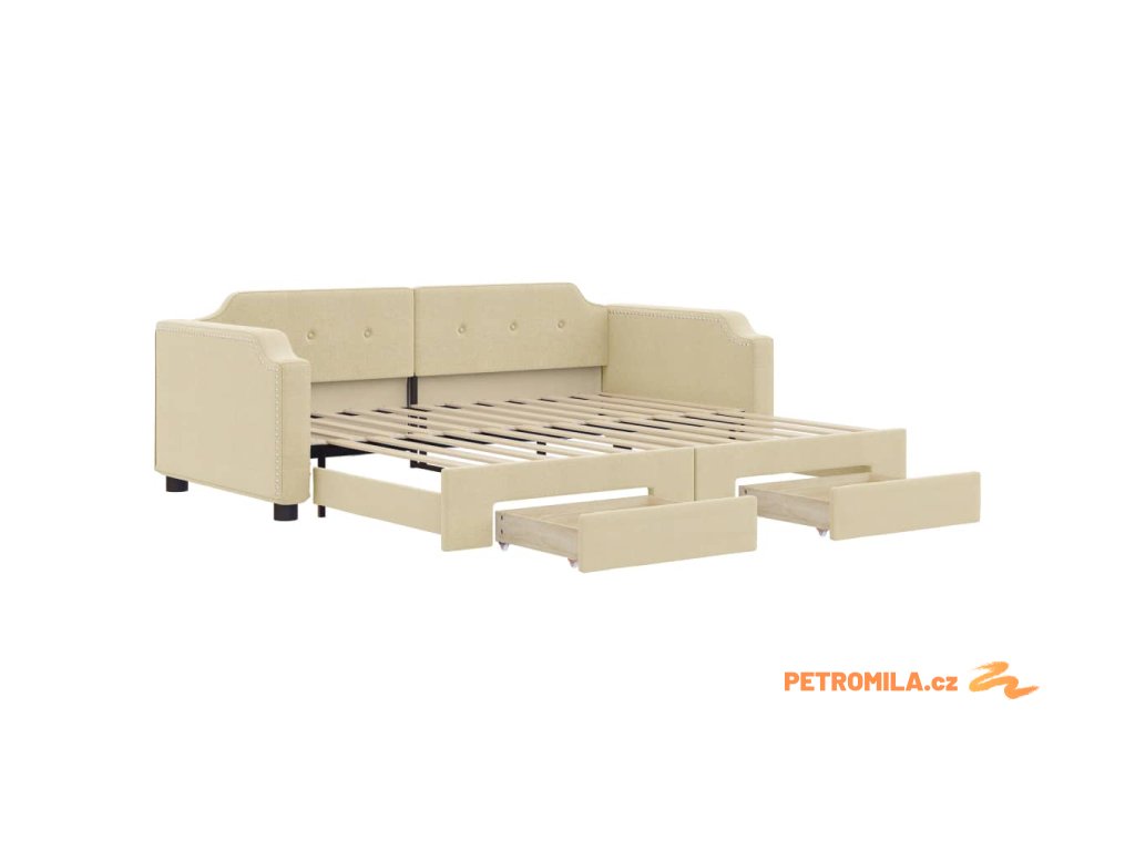 Válenda s přistýlkou a zásuvkami krémová 100 x 200 cm textil
