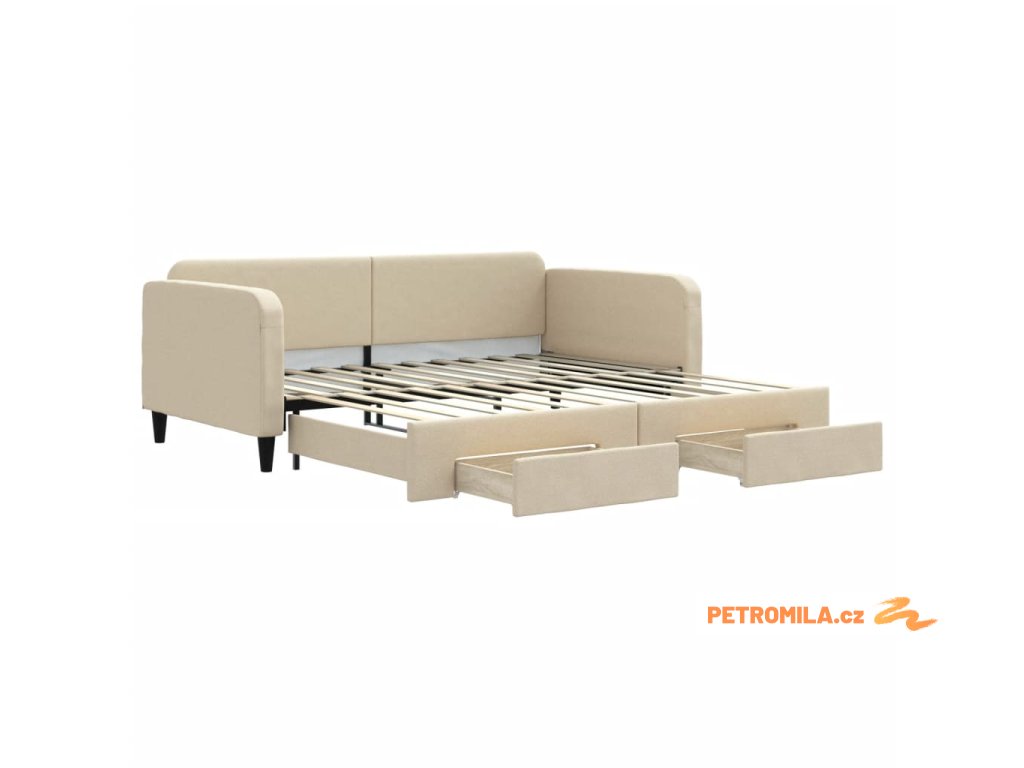 Válenda s přistýlkou a zásuvkami krémová 100 x 200 cm textil
