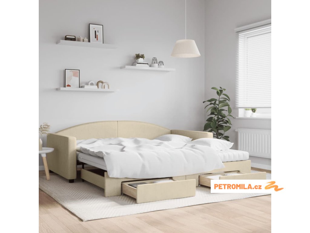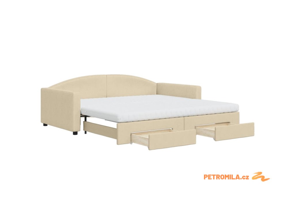Válenda s přistýlkou a zásuvkami krémová 100 x 200 cm textil