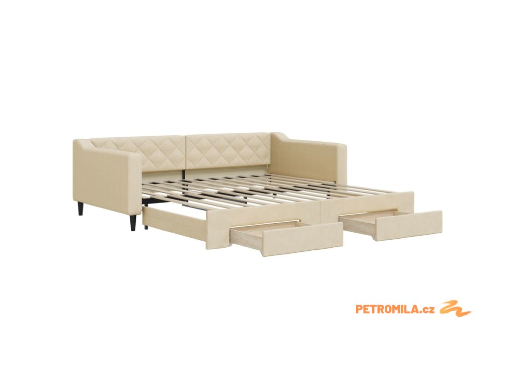 Válenda s přistýlkou a zásuvkami krémová 100 x 200 cm textil