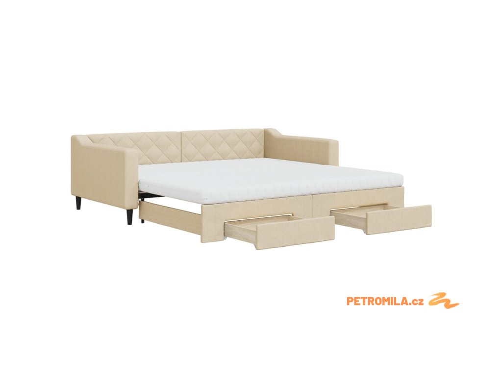 Válenda s přistýlkou a zásuvkami krémová 100 x 200 cm textil