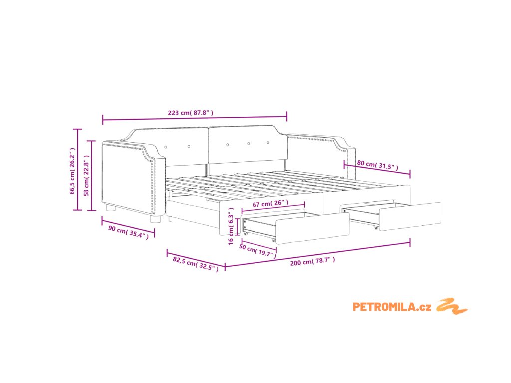 - Rozměry zásuvky pod postel (každá): 67 x 50 x 16 cm (D x Š x V)