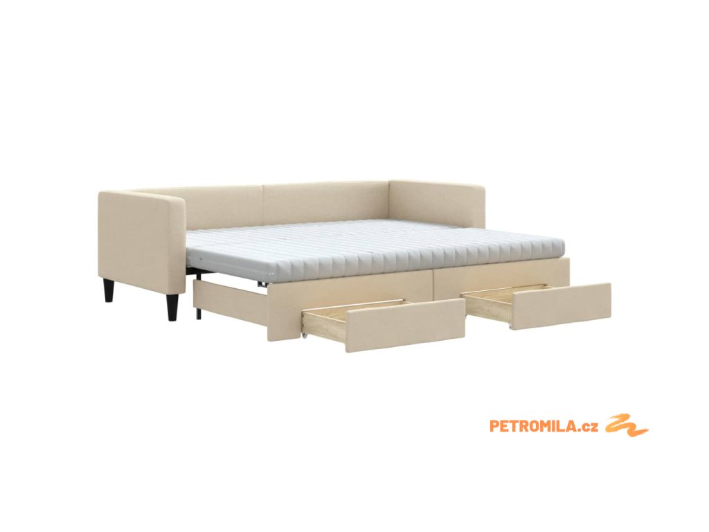 Válenda s přistýlkou a zásuvkami krémová 80 x 200 cm textil