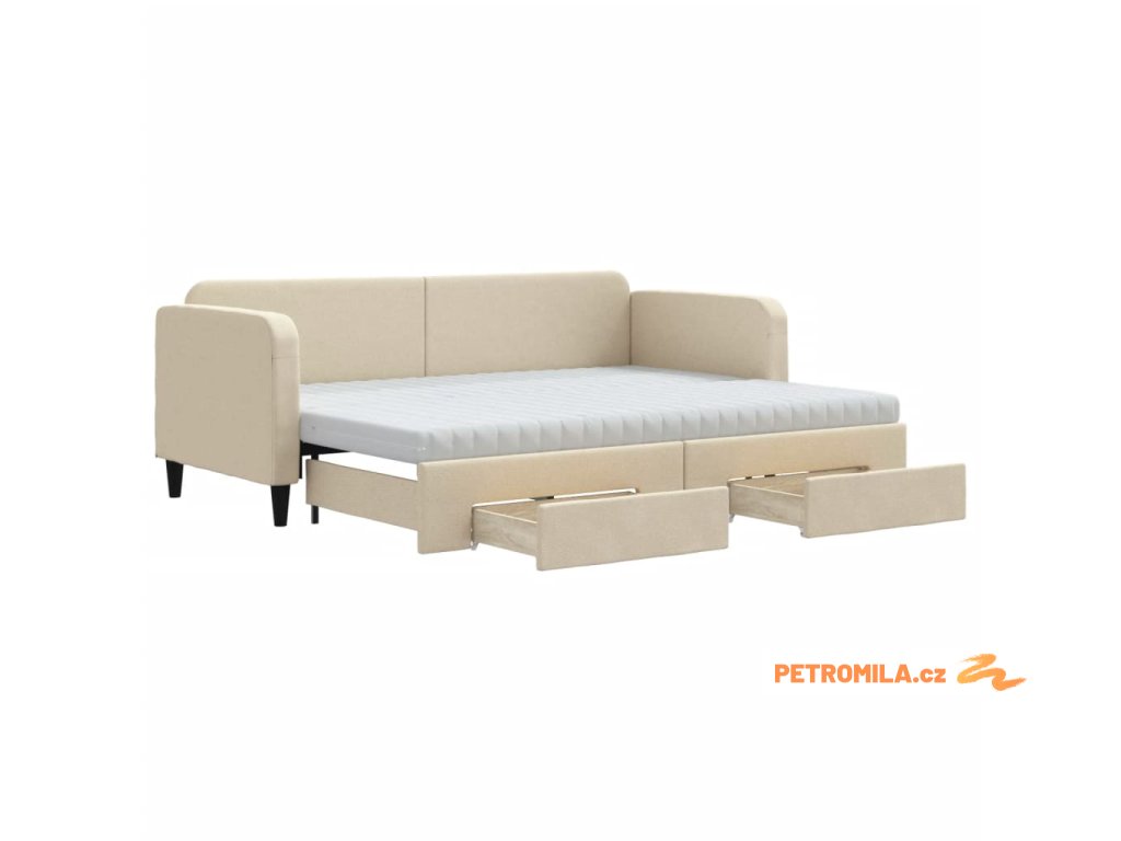 Válenda s přistýlkou a zásuvkami krémová 80 x 200 cm textil