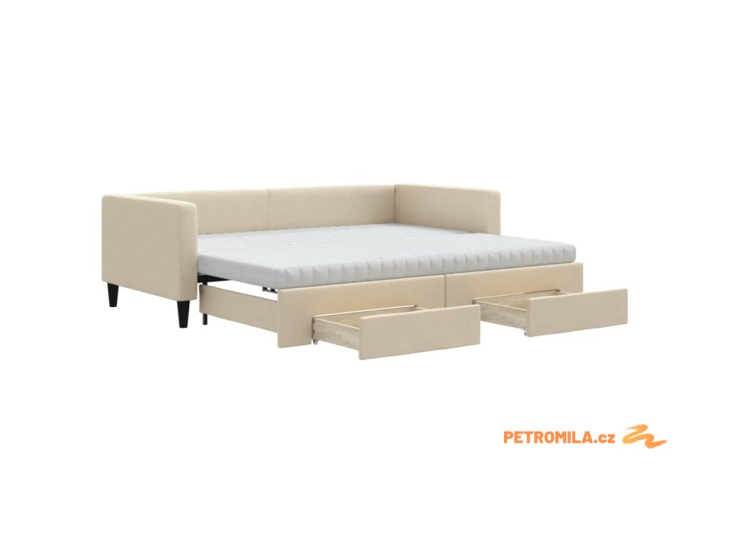 Válenda s přistýlkou a zásuvkami krémová 90 x 200 cm textil