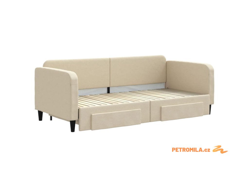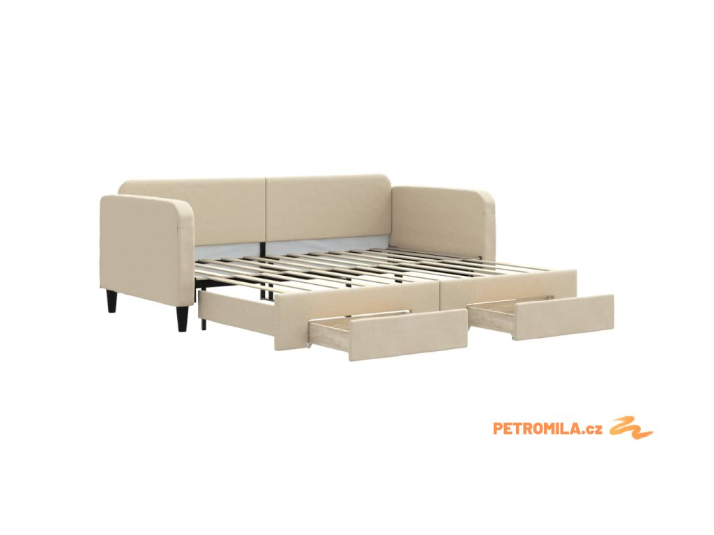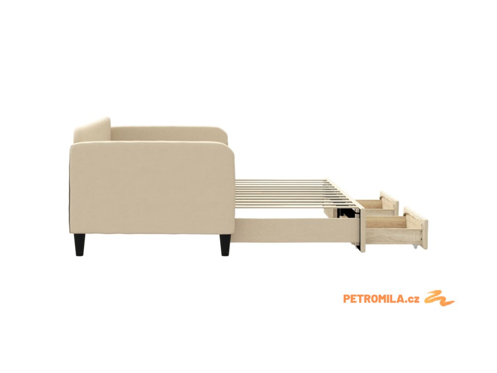 Válenda s přistýlkou a zásuvkami krémová 90 x 200 cm textil