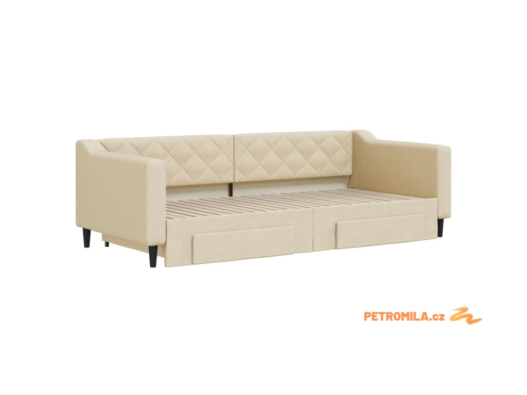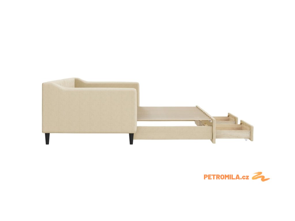 Válenda s přistýlkou a zásuvkami krémová 90 x 200 cm textil