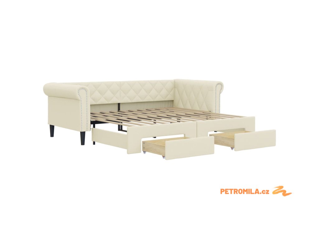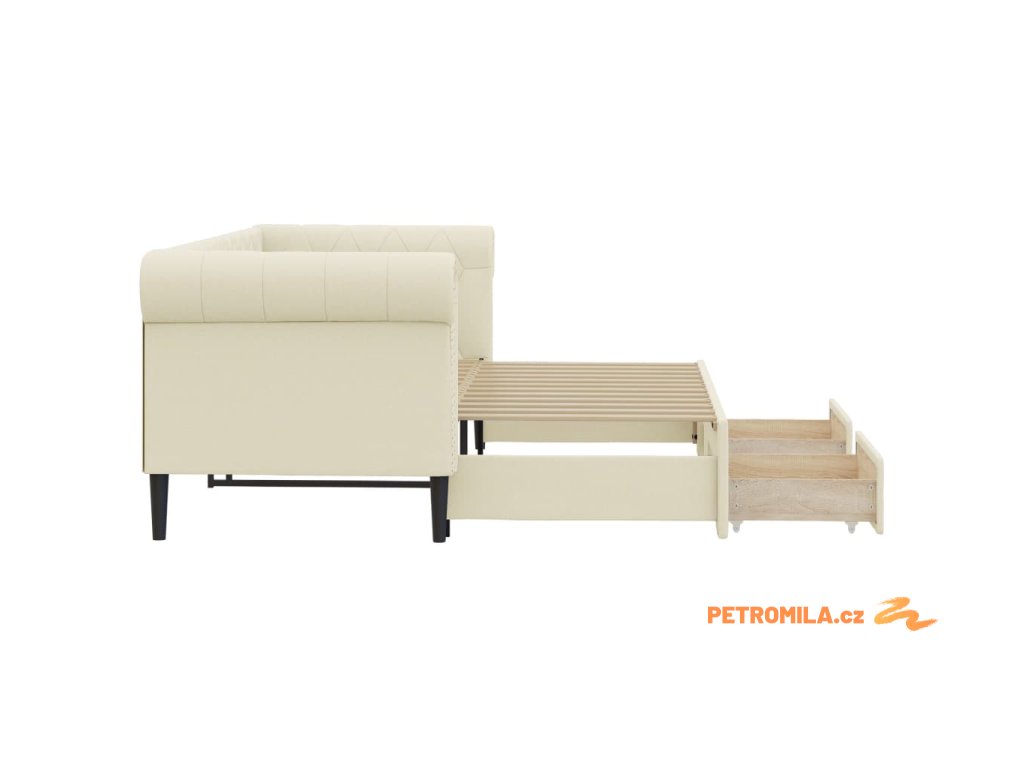 Válenda s přistýlkou a zásuvkami krémová 90 x 200 cm umělá kůže