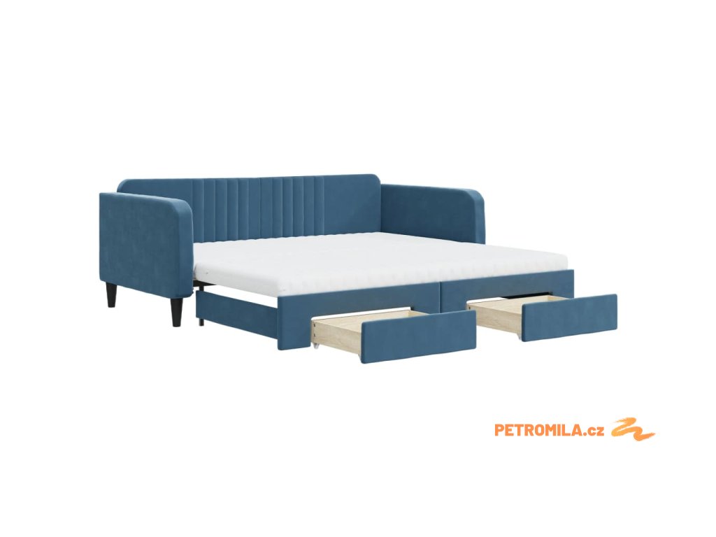 Válenda s přistýlkou a zásuvkami modrá 100 x 200 cm samet
