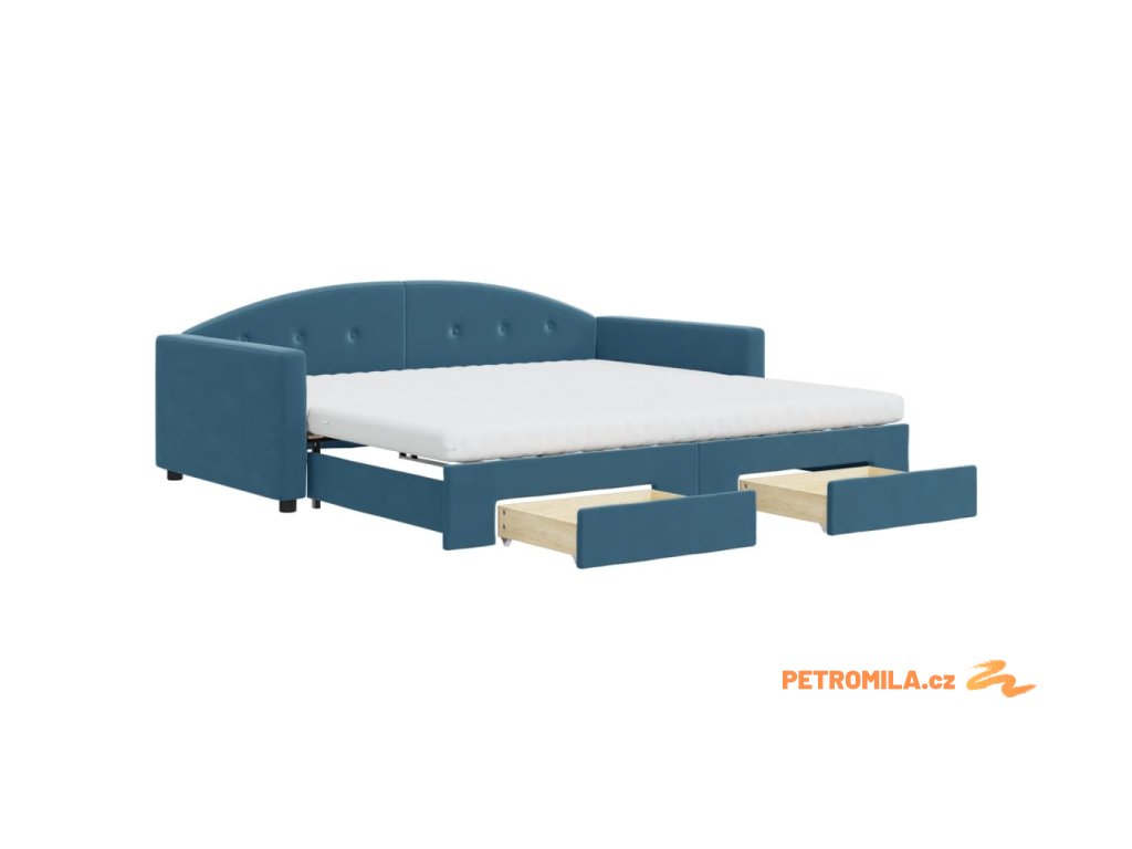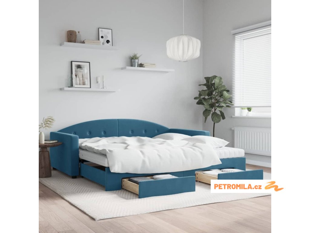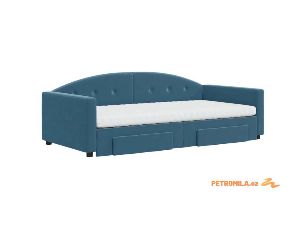 Válenda s přistýlkou a zásuvkami modrá 100 x 200 cm samet
