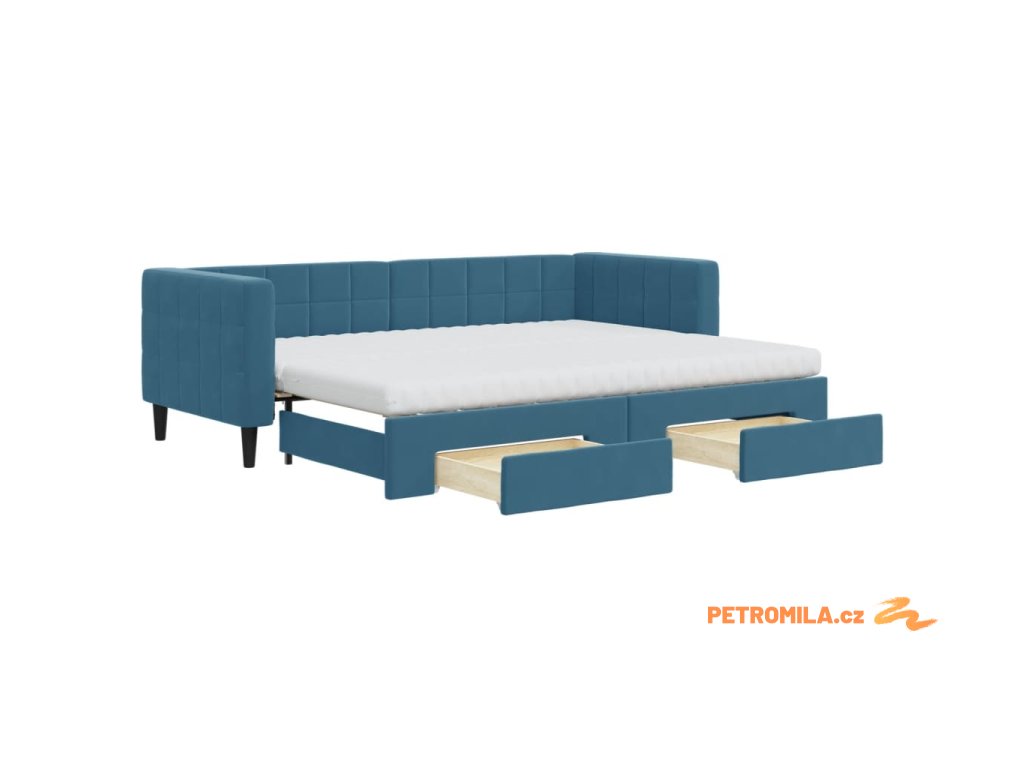 Válenda s přistýlkou a zásuvkami modrá 80 x 200 cm samet