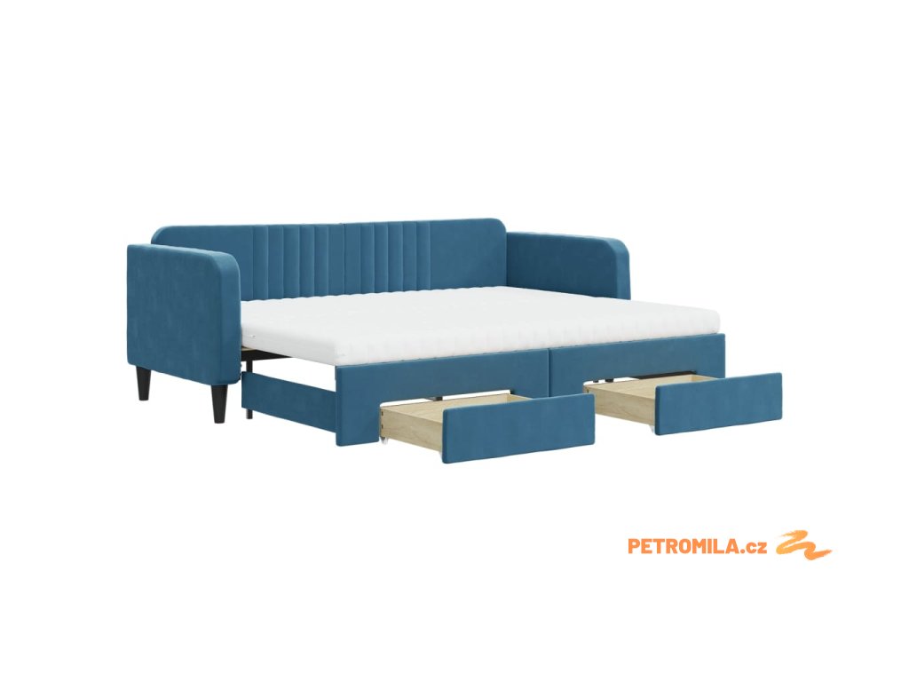 Válenda s přistýlkou a zásuvkami modrá 80 x 200 cm samet