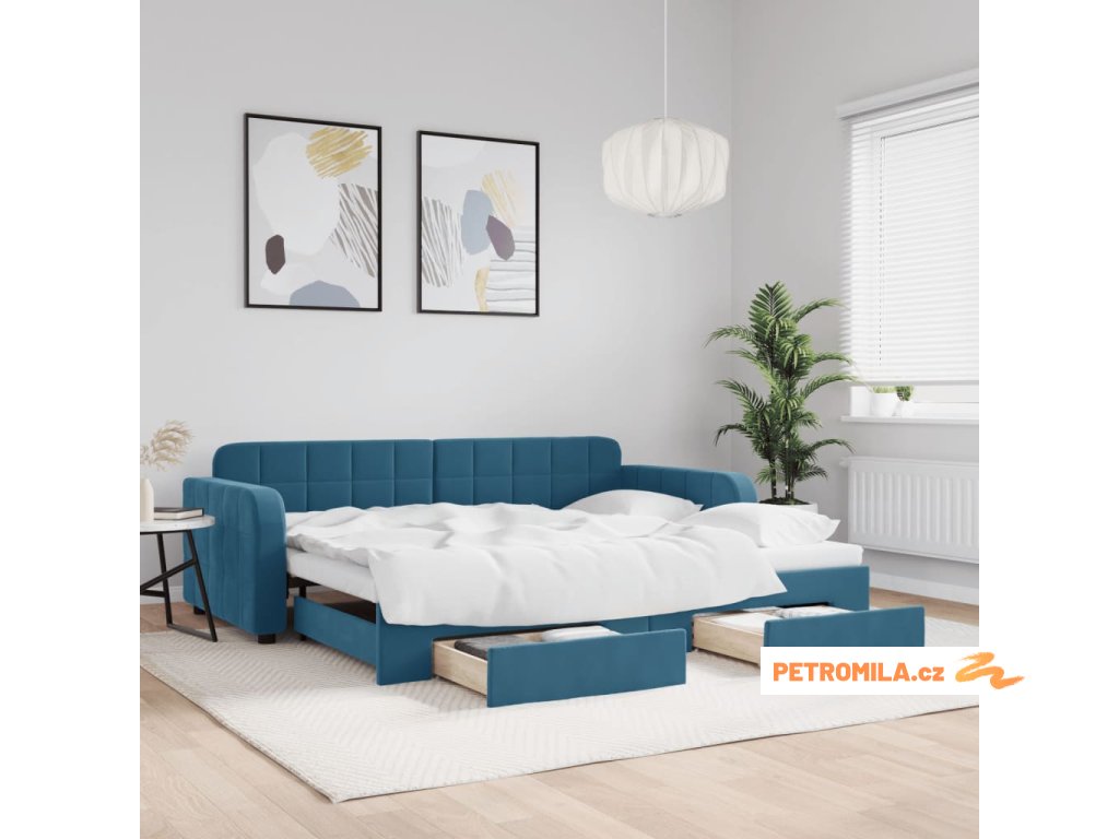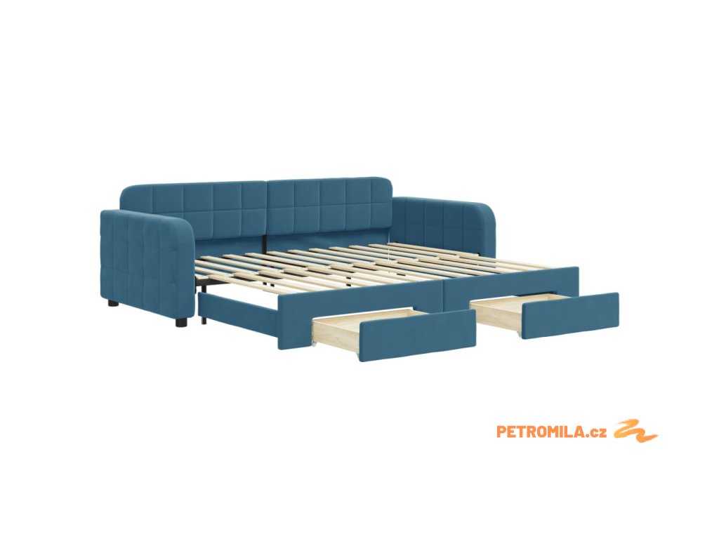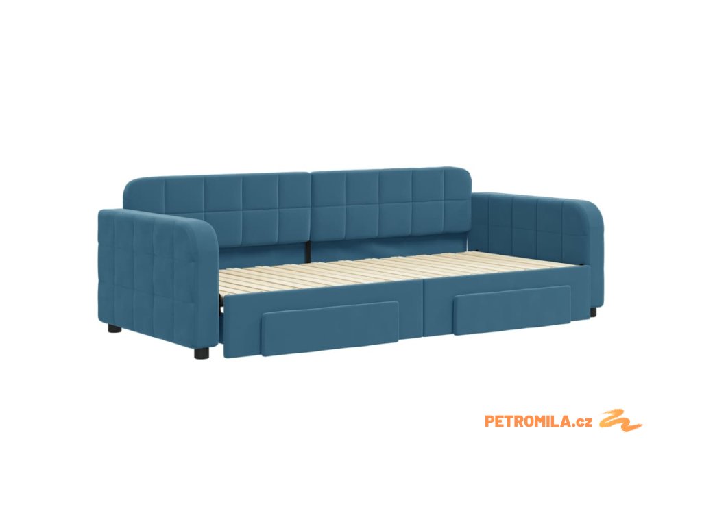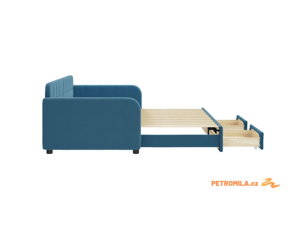 Válenda s přistýlkou a zásuvkami modrá 90 x 200 cm samet