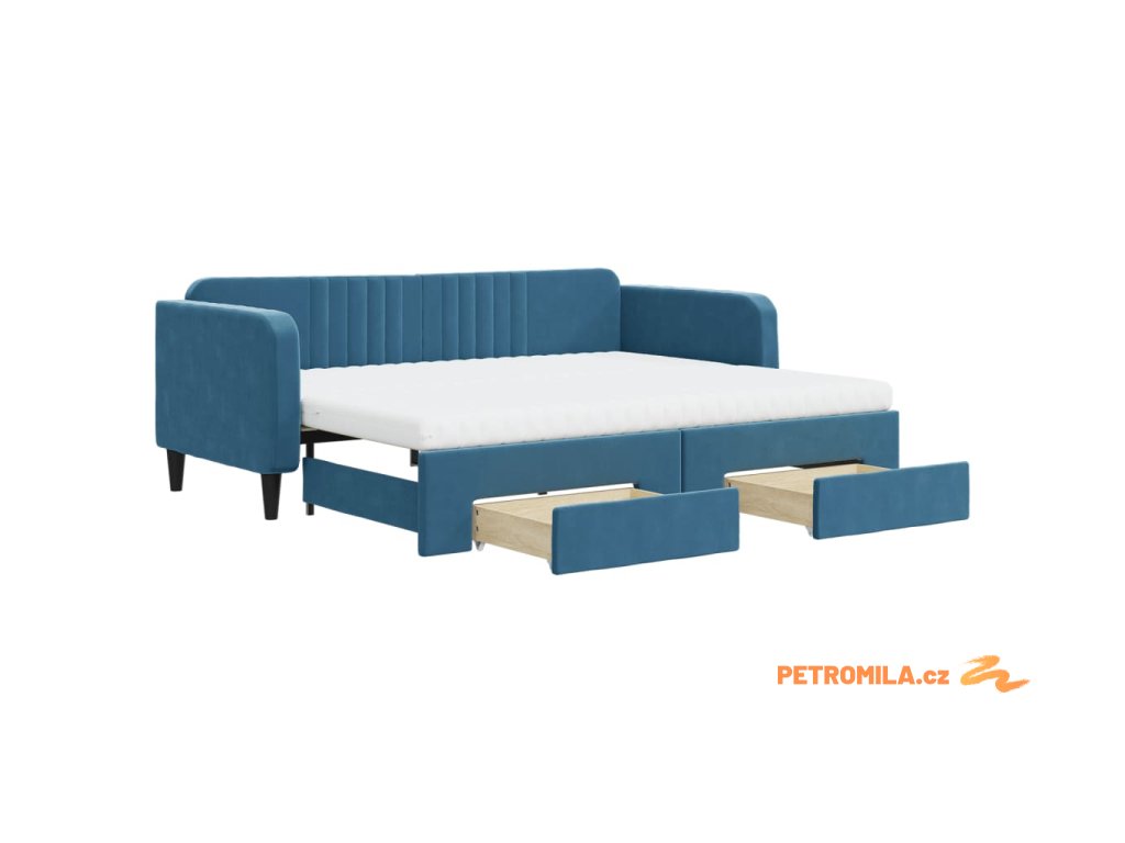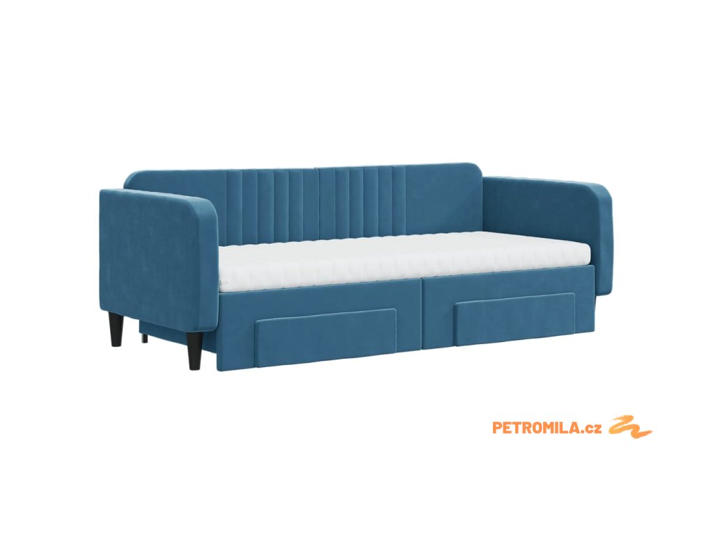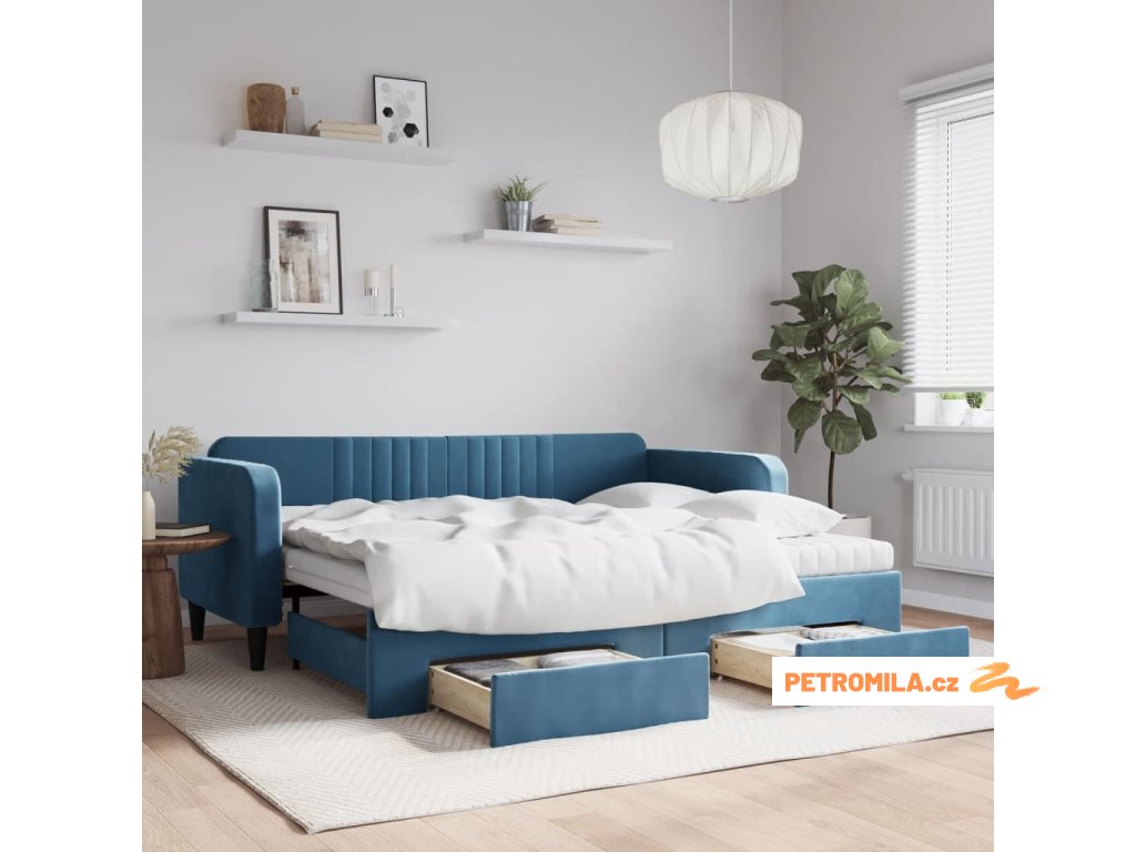 Válenda s přistýlkou a zásuvkami modrá 90 x 200 cm samet