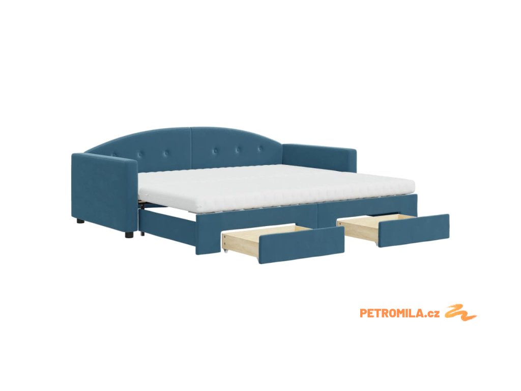 Válenda s přistýlkou a zásuvkami modrá 90 x 200 cm samet