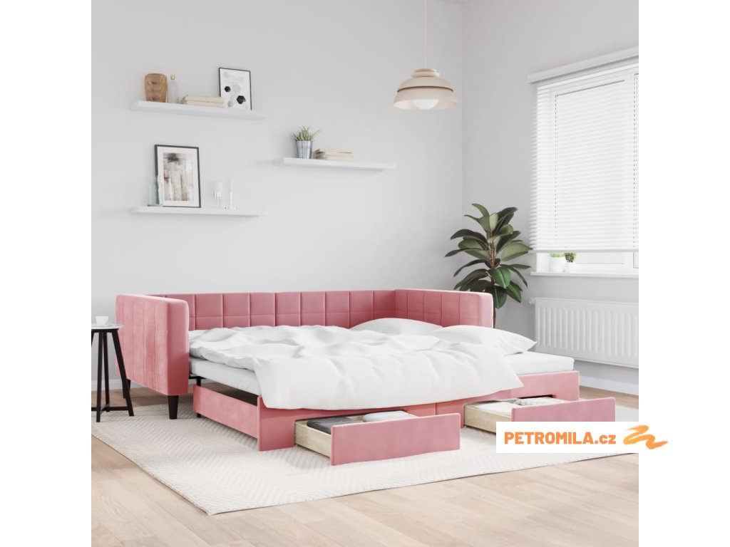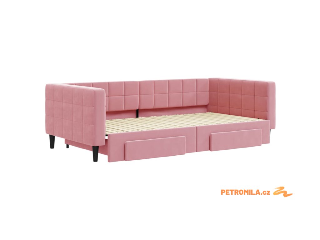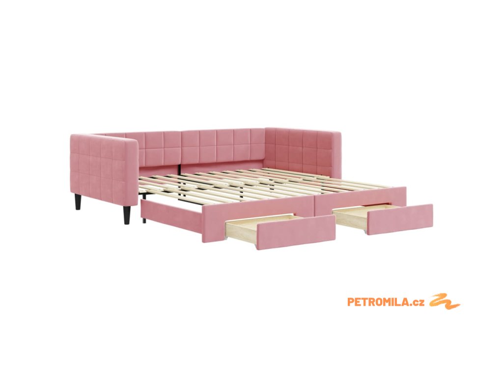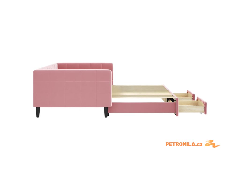 Válenda s přistýlkou a zásuvkami růžová 100 x 200 cm samet