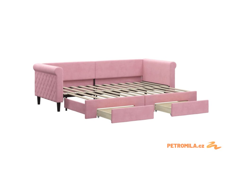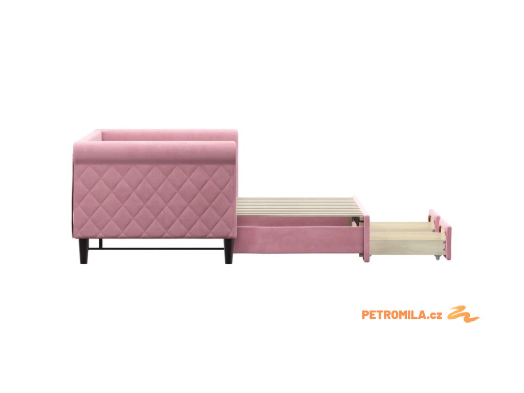 Válenda s přistýlkou a zásuvkami růžová 80 x 200 cm samet