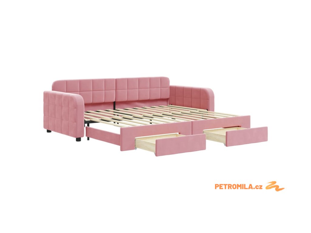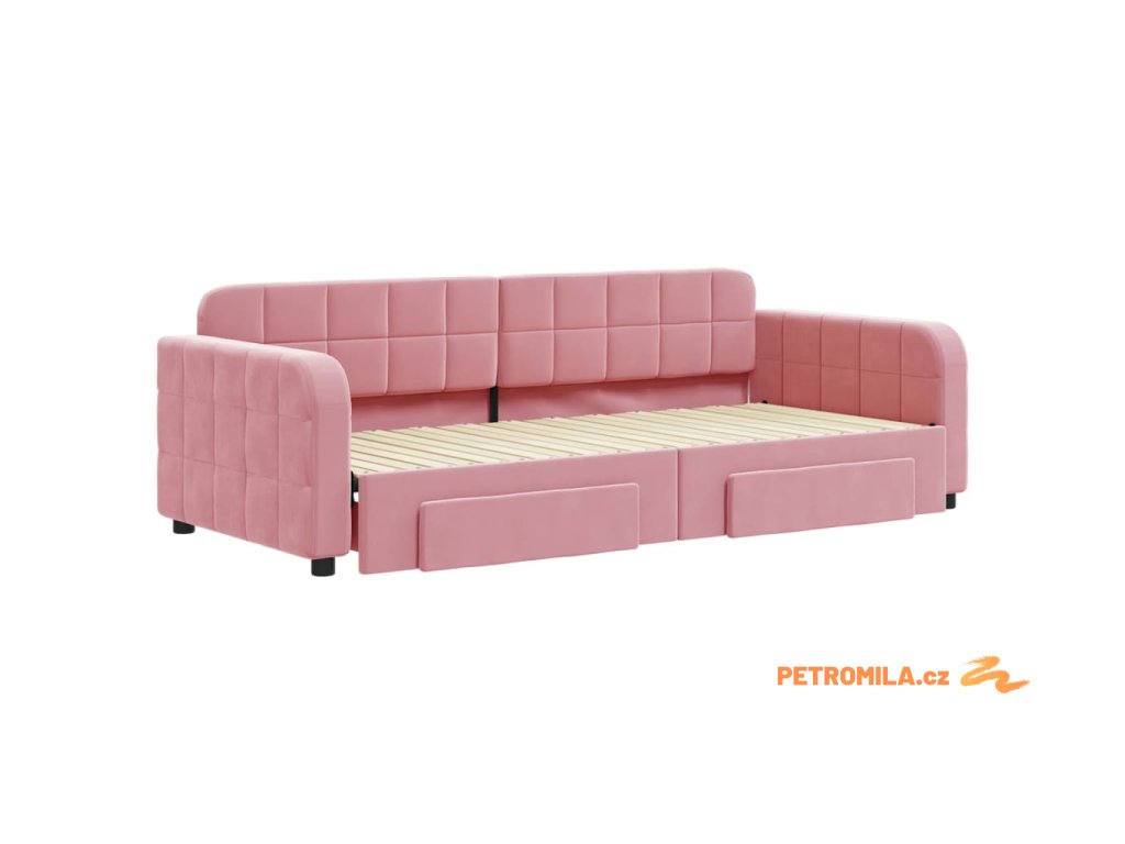 Válenda s přistýlkou a zásuvkami růžová 90 x 200 cm samet