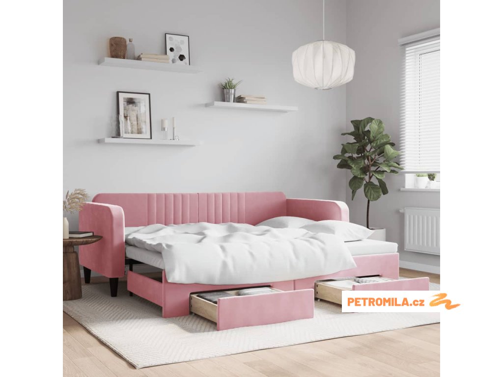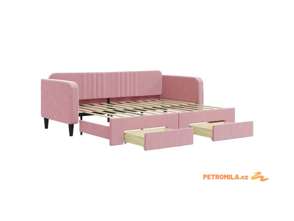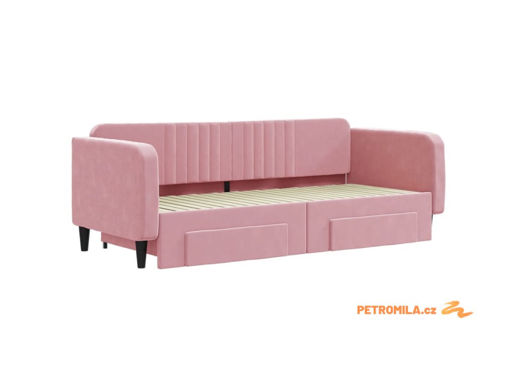 Válenda s přistýlkou a zásuvkami růžová 90 x 200 cm samet