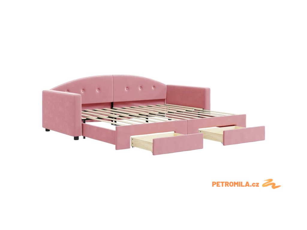 Válenda s přistýlkou a zásuvkami růžová 90 x 200 cm samet