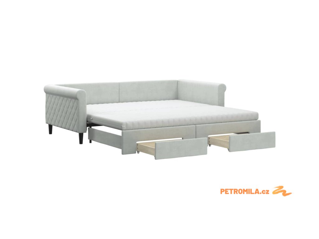 Válenda s přistýlkou a zásuvkami světle šedá 100 x 200 cm samet