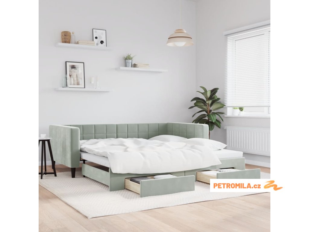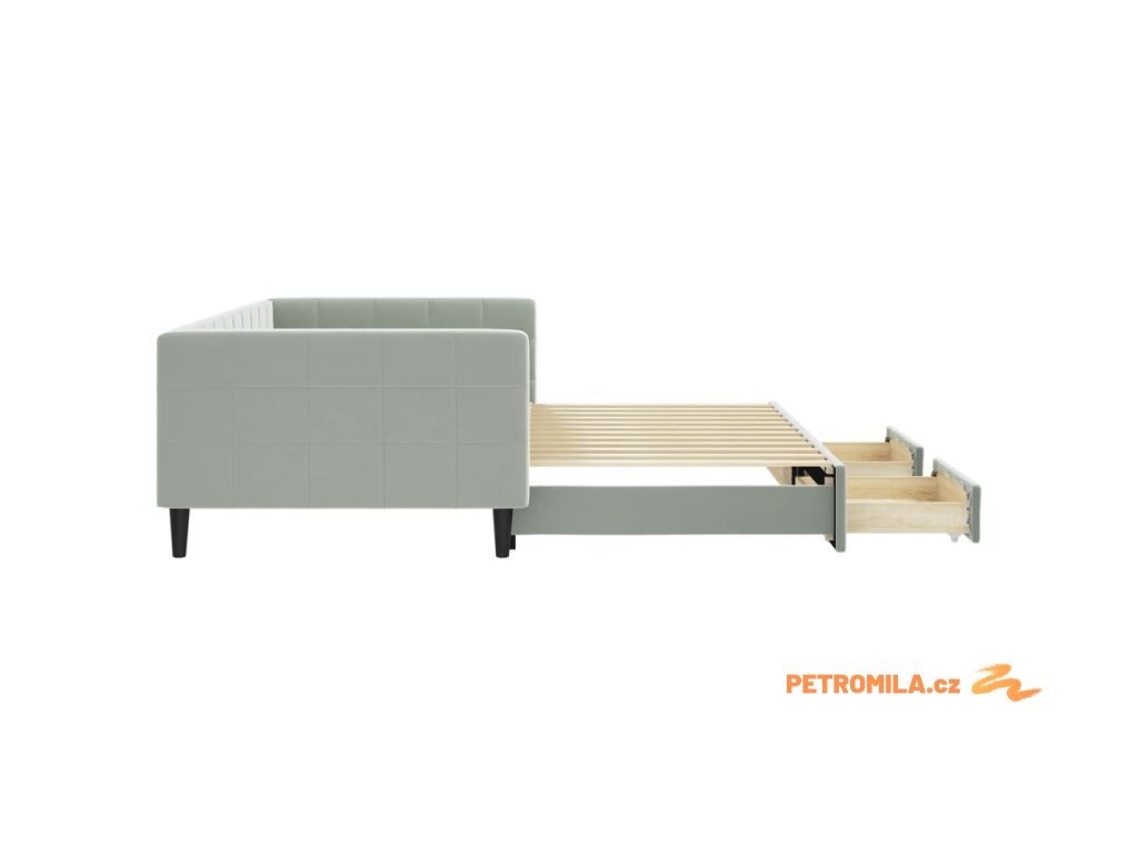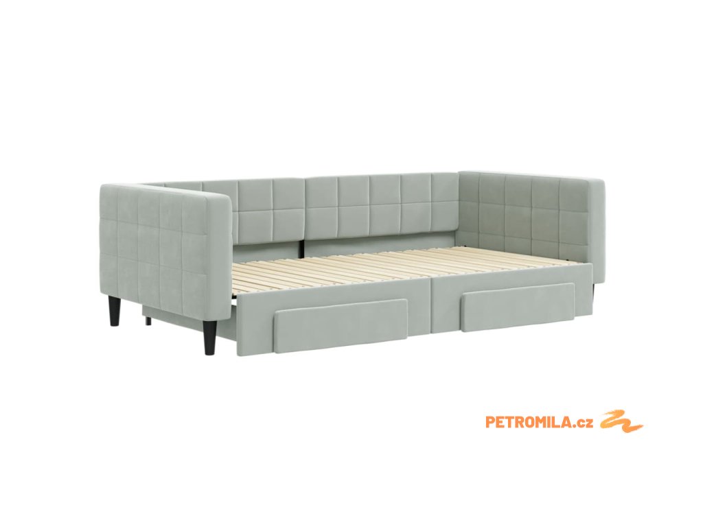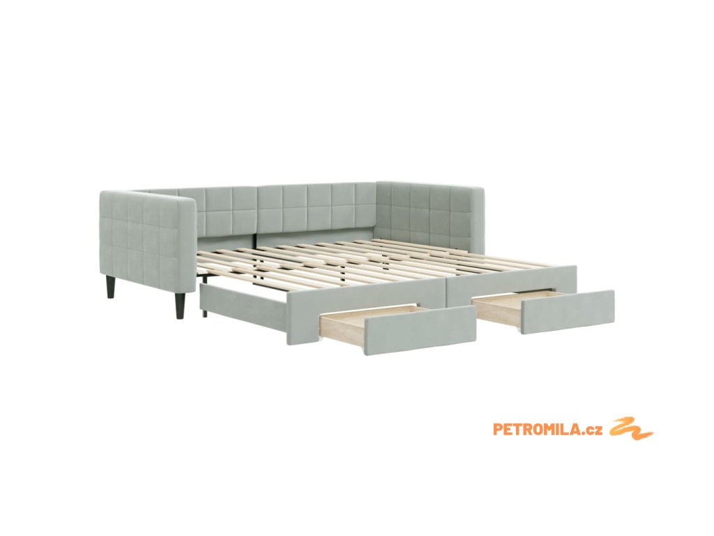 Válenda s přistýlkou a zásuvkami světle šedá 100 x 200 cm samet
