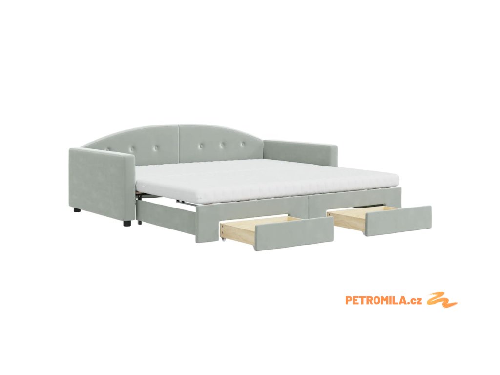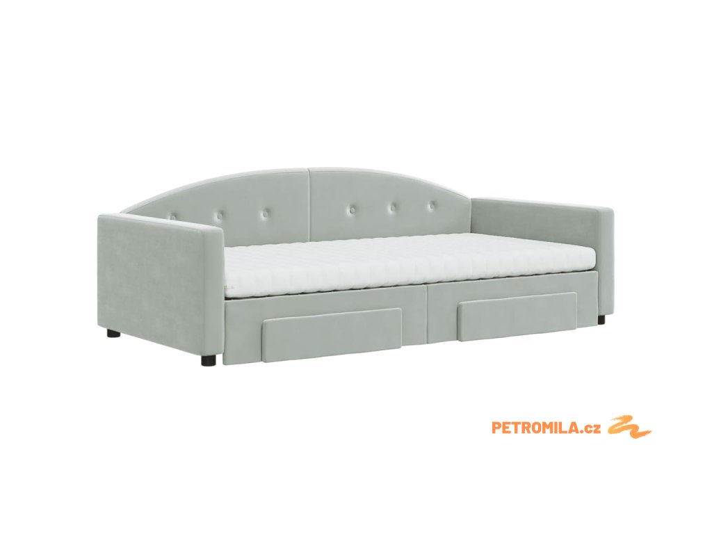 Válenda s přistýlkou a zásuvkami světle šedá 100 x 200 cm samet