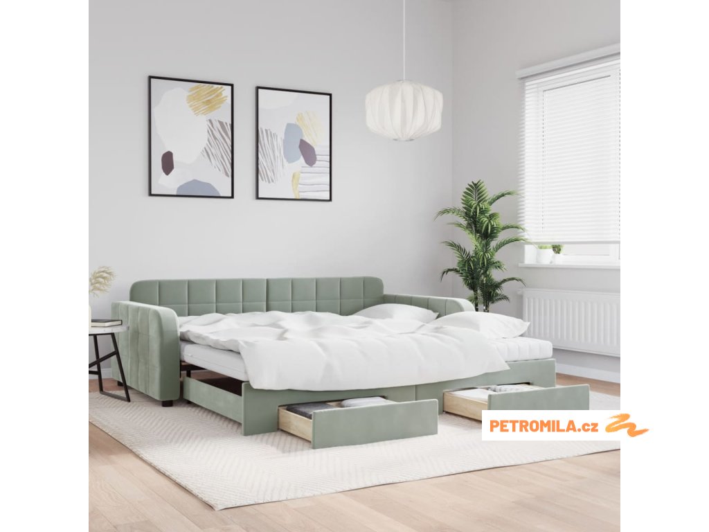 Válenda s přistýlkou a zásuvkami světle šedá 100 x 200 cm samet